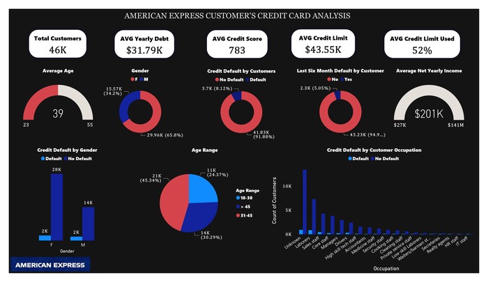 This analysis presents key insights from American Express customer credit data, visualized using PowerBI. The data provides an in-depth look at customer demographics, financial profiles, credit insights, and other significant information.