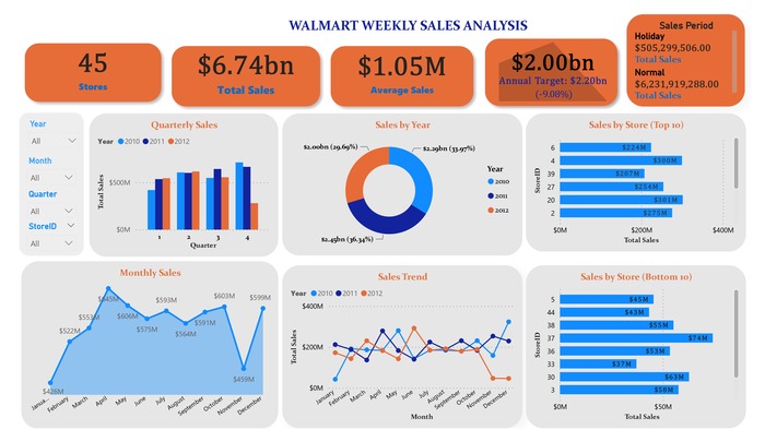 This analysis presents key insights from Walmart's weekly sales data, specifically from 2010 to 2012. The data is visualized using PowerBI, offering an in-depth look at Sales performance, trends, and other significant patterns.